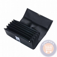 - Anyaga: műbőr- Szín: fekete- Fakkok száma: 8 - Cipzáras aprópénz tartó.- Csatos zár- Láncos rögzíthetőség- Méret: 18 x 10.5 x 4,5 cm